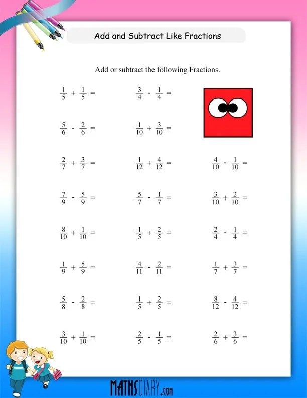 As you scroll down, you will see many worksheets for basic fractions , equal parts , parts of a group/whole , equivalent fractions , compare and order fractions , word problems , …